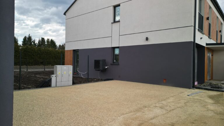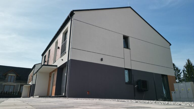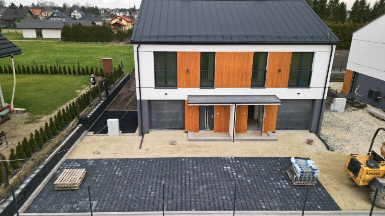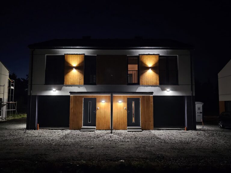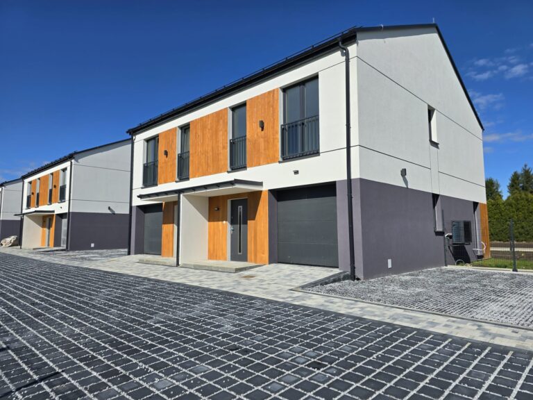 Budynki zostały wykonane z nowoczesnych materiałów. Posiadają niezbędne instalacje oraz wydajne ogrzewanie podłogowe, które ułatwia aranżację wnętrz i równomiernie rozprowadza ciepło po wszystkich pomieszczeniach. W projekcie wykorzystana została trwała i estetyczna stolarka okienna. We wnętrzach przygotowano trasy pod instalację klimatyzacji i fotowoltaiki. Teren inwestycji jest zagospodarowany i doświetlony, a droga wewnętrzna utwardzona. Chodnik i podjazd wyłożono kostką brukową, a zewnętrzne miejsca postojowe geokratą.